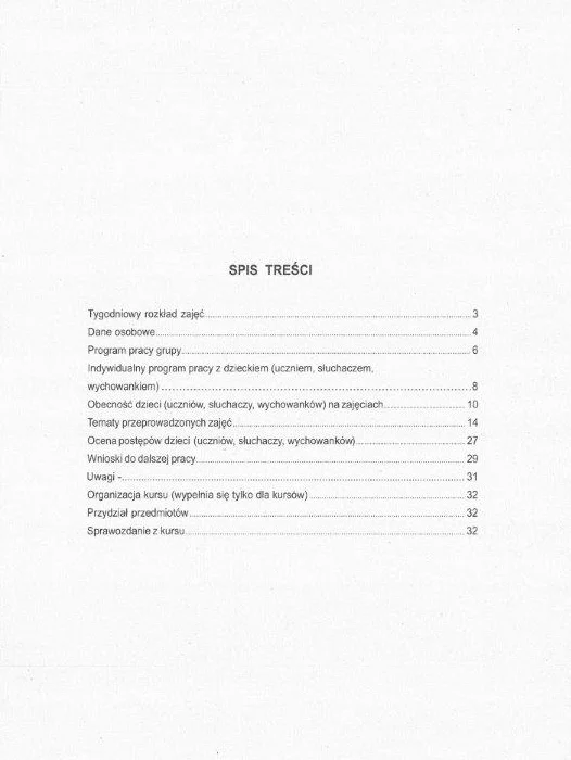 •     Typ: Dziennik zajęć dla kursów i zajęć pozalekcyjnych.