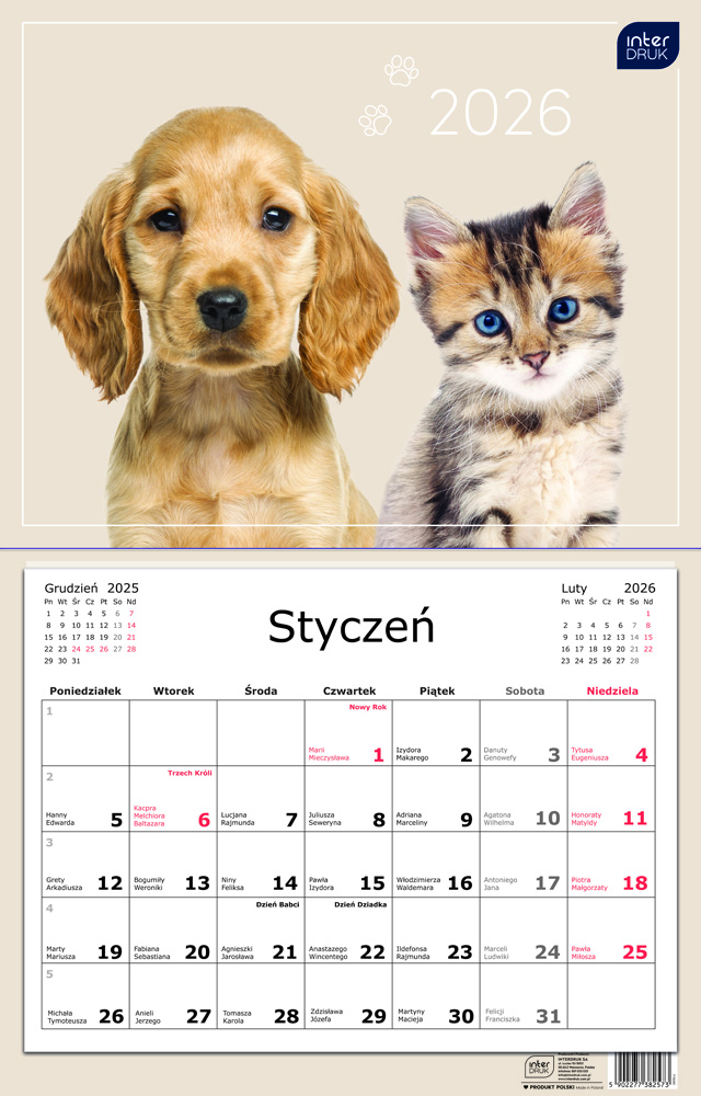 Strona główna » Artykuły papiernicze » Kalendarze » Kalendarze ścienne » Kalendarz jednodzielny 32X50 Zwierzaki 2026 Interdruk