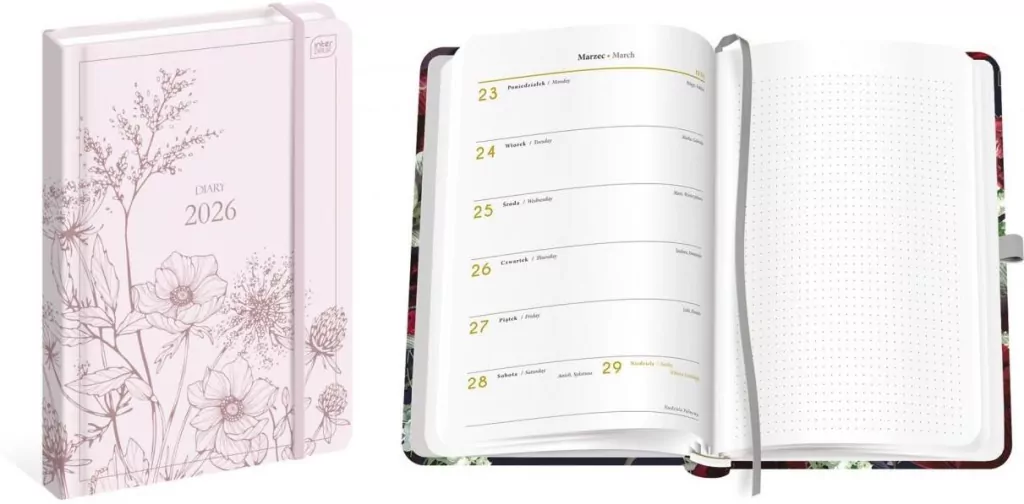 • kalendarium w układzie 1 tydzień na stronie + część notesowa