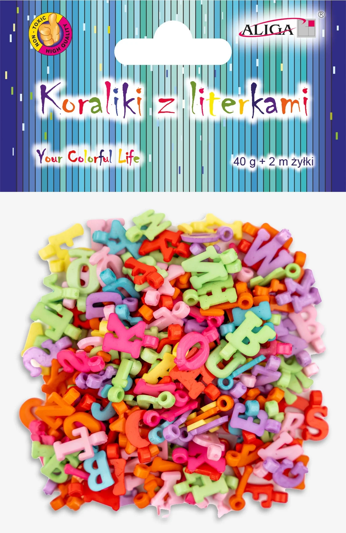 Koraliki Pja-8541 Plastikowe z literkamim 2cm 40g + 2m żyłki