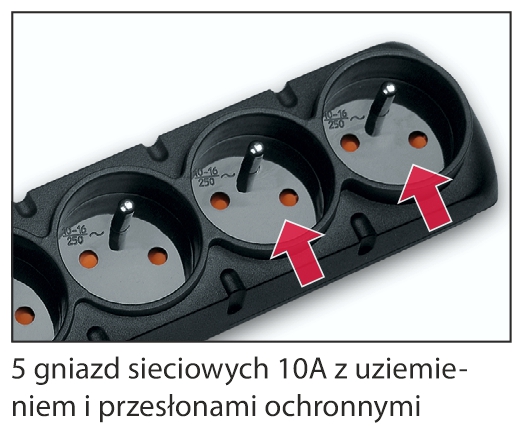 Ilość gniazd:5 gniazd z bolcem uziemiającym (system 2P+Z)