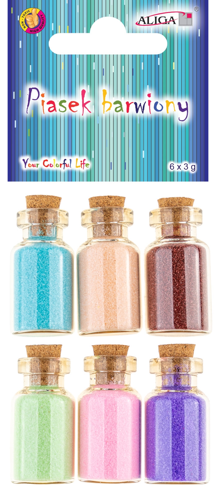 Strona główna » Przybory szkolne » Artykuły kreatywne » Materiały do zdobienia » Piasek barwiony w słoiczkach 6 kolorów 4g