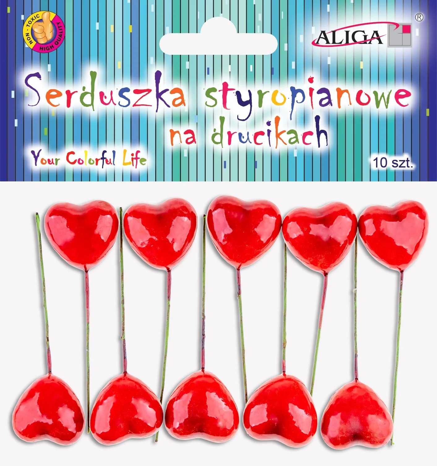 Serduszka styropianowe na drucikach 2,5x9cm 10 sztuk aliga (sed-4672)
