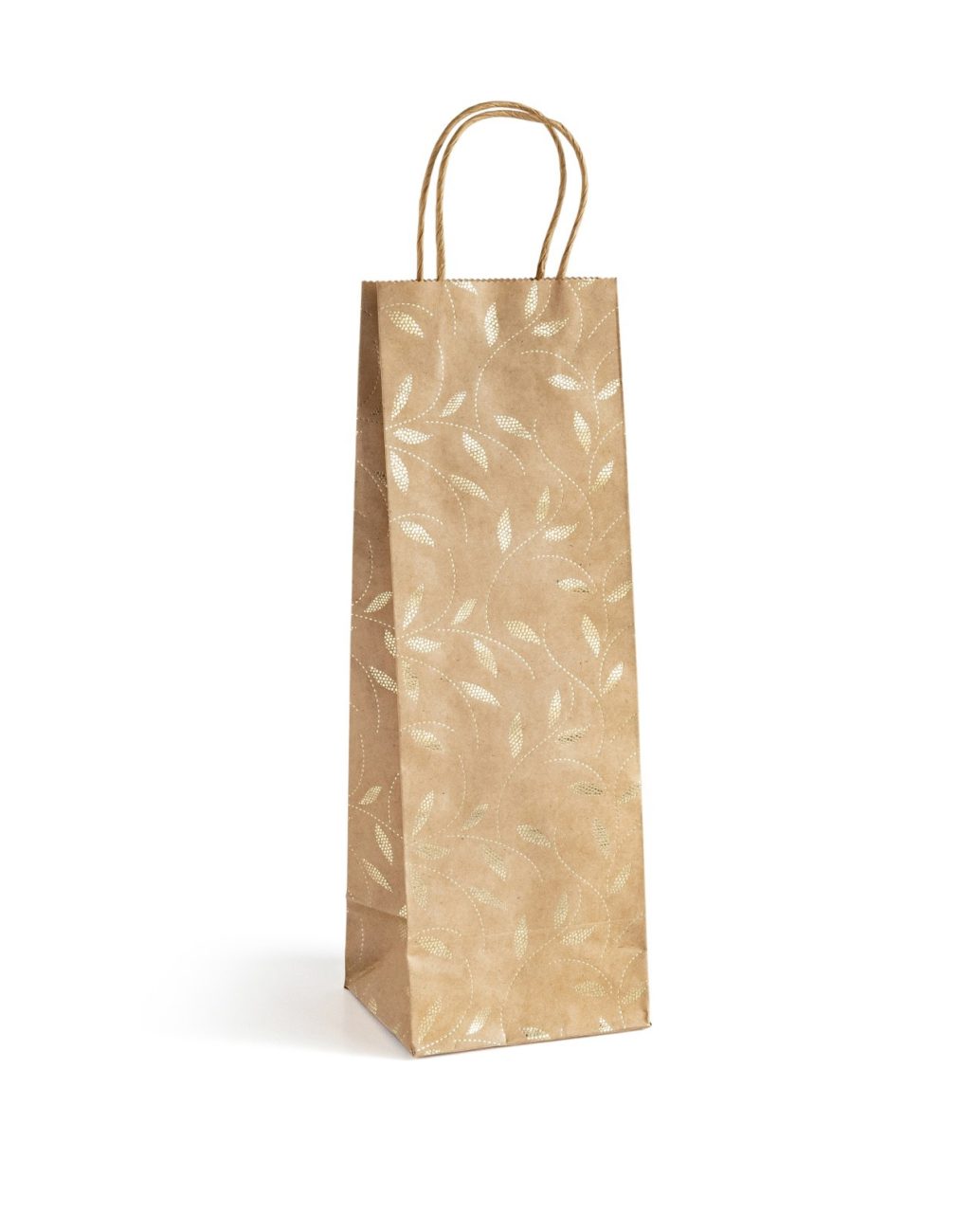 Torebka Prezentowa na alkohol Kraft „Złote Liście” – Elegancja w Stylu Eko (5 szt.)