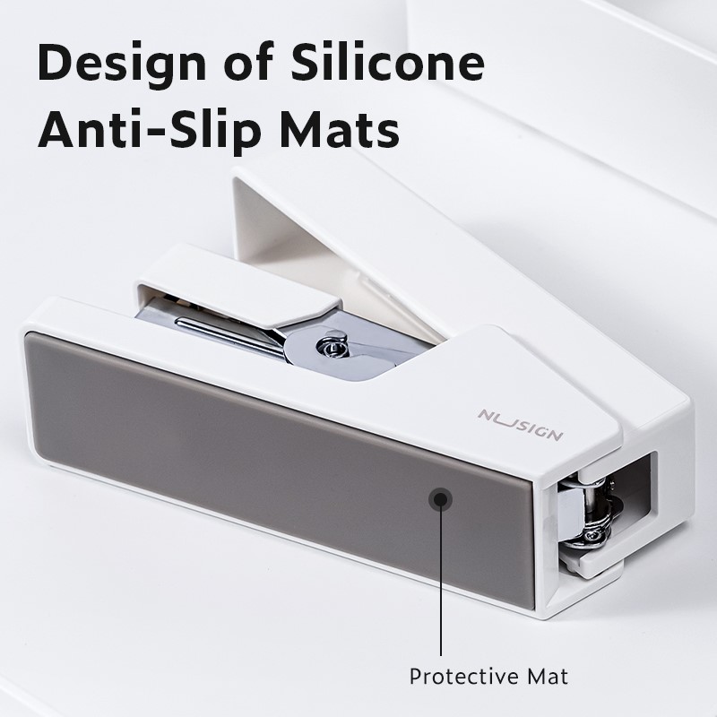 • Stabilność TPE: Podstawa zszywacza została pokryta antypoślizgowym materiałem TPE, co gwarantuje, że urządzenie nie przesuwa się po blacie podczas pracy i nie rysuje powierzchni biurka.